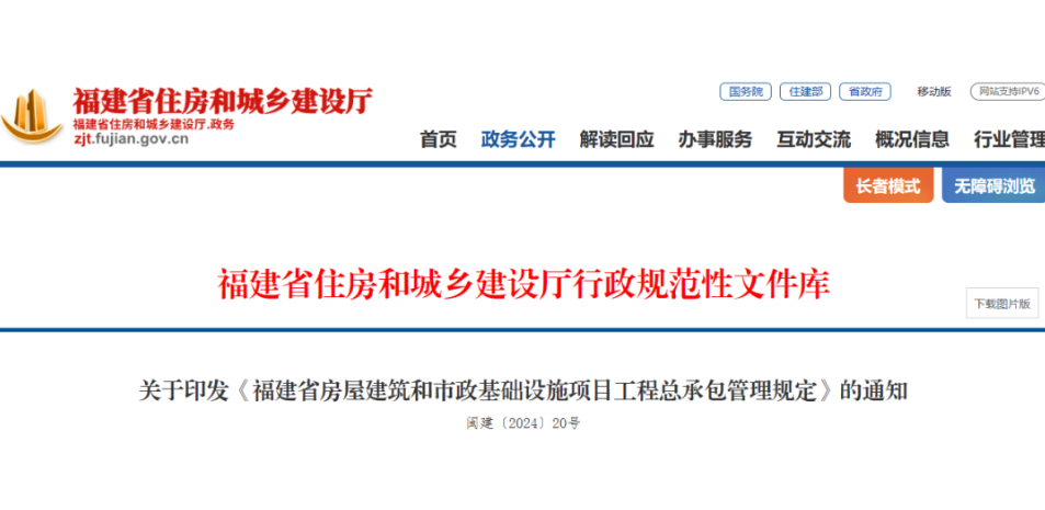 近日,福建省住建廳發(fā)布關(guān)于印發(fā)《福建省房屋建筑和市政基礎(chǔ)設(shè)施項(xiàng)目工程總承包管理規(guī)定》的通知(閩建〔2024〕20號(hào))。本規(guī)定自2025年4月1日起施行,有效期5年。原閩建辦筑函〔201...