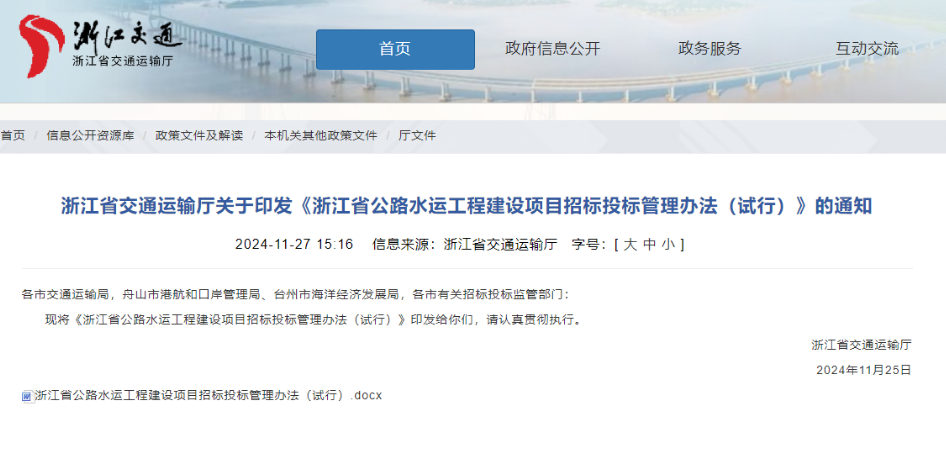 浙江省交通運(yùn)輸廳關(guān)于印發(fā)《浙江省公路水運(yùn)工程建設(shè)項(xiàng)目招標(biāo)投標(biāo)管理辦法(試行)》的通知 各市交通運(yùn)輸局,舟山市港航和口岸管理局、臺(tái)州市海洋經(jīng)濟(jì)發(fā)展局,各市有關(guān)招標(biāo)投標(biāo)監(jiān)管...