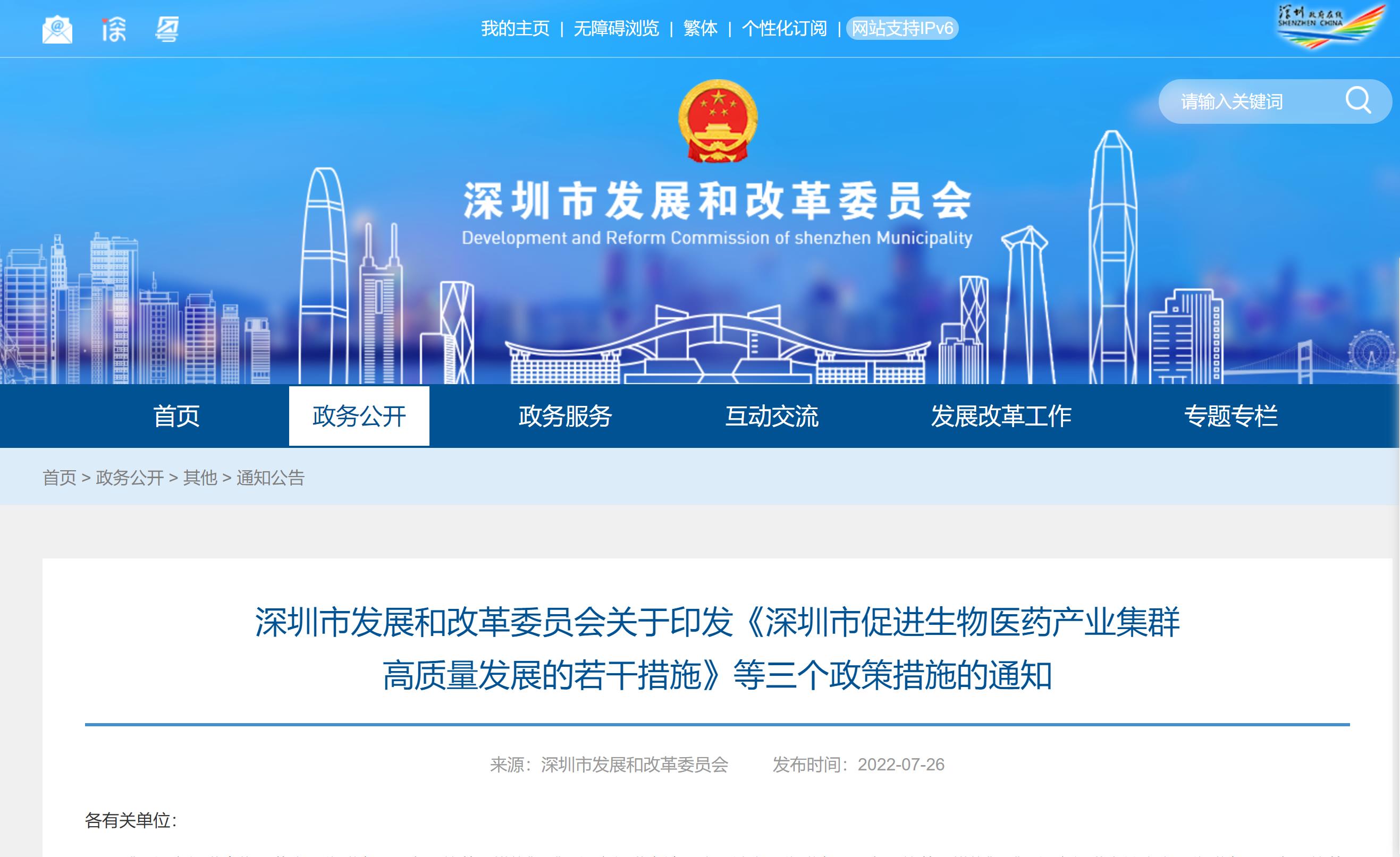 深圳發(fā)改委網(wǎng)站消息,深圳發(fā)改委印發(fā)《深圳市促進(jìn)生物醫(yī)藥產(chǎn)業(yè)集群高質(zhì)量發(fā)展的若干措施》提出,支持企業(yè)納入國(guó)家藥品集中帶量采購(gòu)。鼓勵(lì)企業(yè)積極參加國(guó)家藥品集中帶量采購(gòu)?fù)卣故袌?chǎng),中標(biāo)品種按當(dāng)年采購(gòu)總金額的3%予以資助...