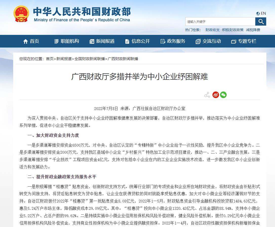 廣西丨財政廳多措并舉為中小企業(yè)紓...